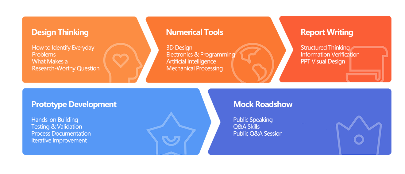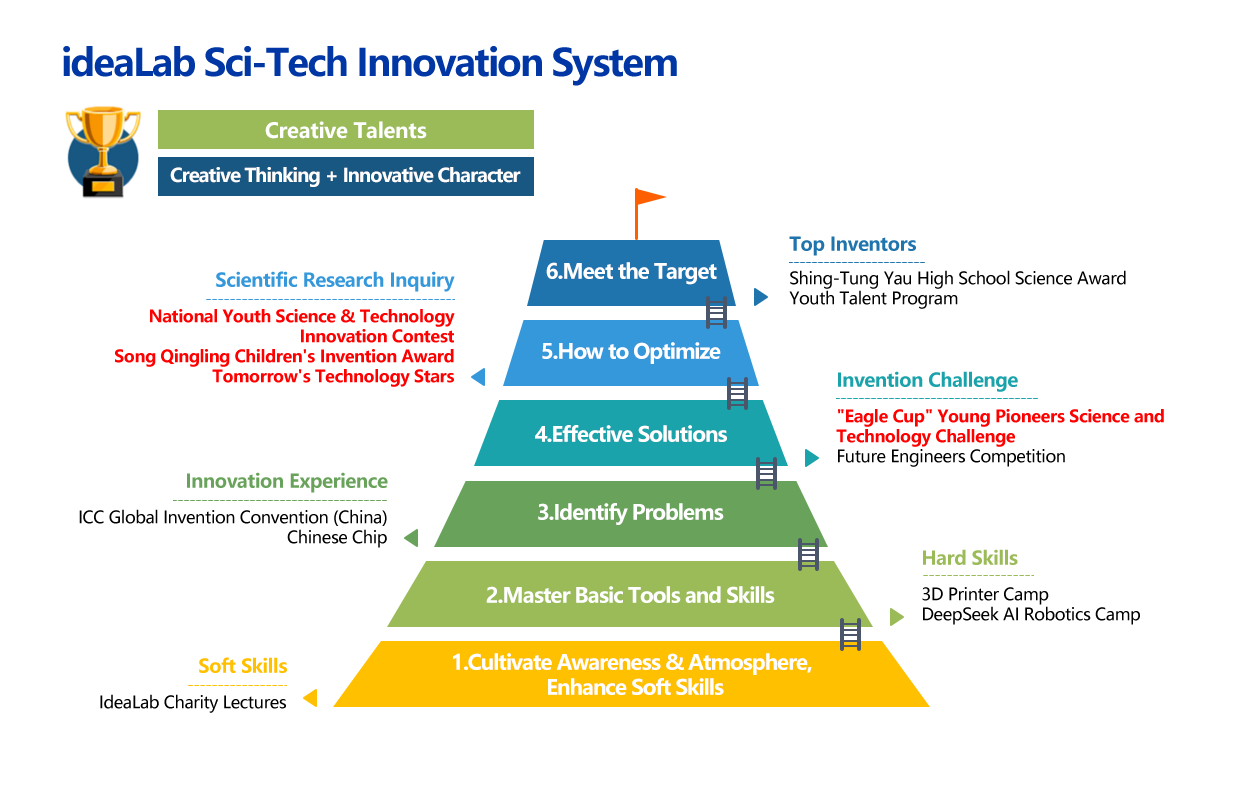 To nurture innovative talents, our idealLab has developed a "Science and Technology Innovation Product System." It matches the corresponding innovation skills and competitions to the developmental needs of students at different stages, helping them to develop their strengths in technology and enrich their resumes!